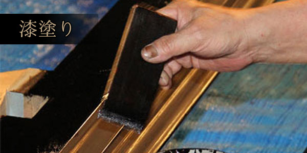 木彫刻、木工、漆工、金箔押し、彩色、蒔絵、金物工など 手仕事の細やかで丁寧な作業、あらゆる技術を駆使し組み合わせた総合工芸品であり、分業制を取ることで高い品質を維持しています。