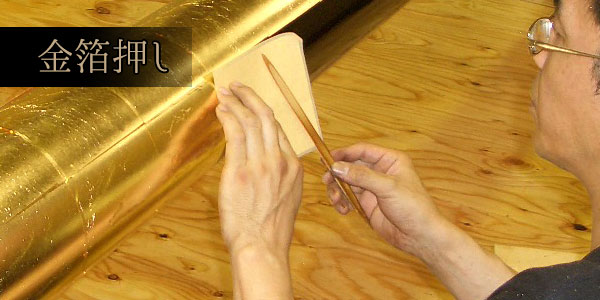 We will stamp gold leaf one by one with natural relined lacquer.