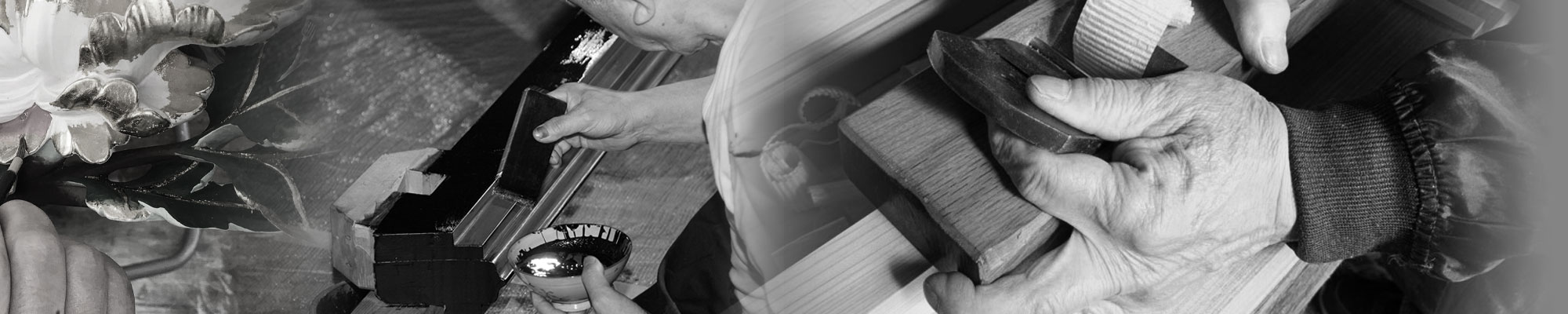 On the molded wood, the groundwork is applied and natural refined lacquer is hand-painted.