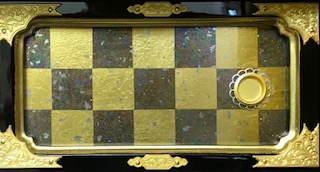 Draw a rough sketch with lacquer, after the Roiro-processed, and then sow gold powder, silver powder, shellfish, etc. on it to draw a pattern. Afterwards, it is finished by adding or polishing.